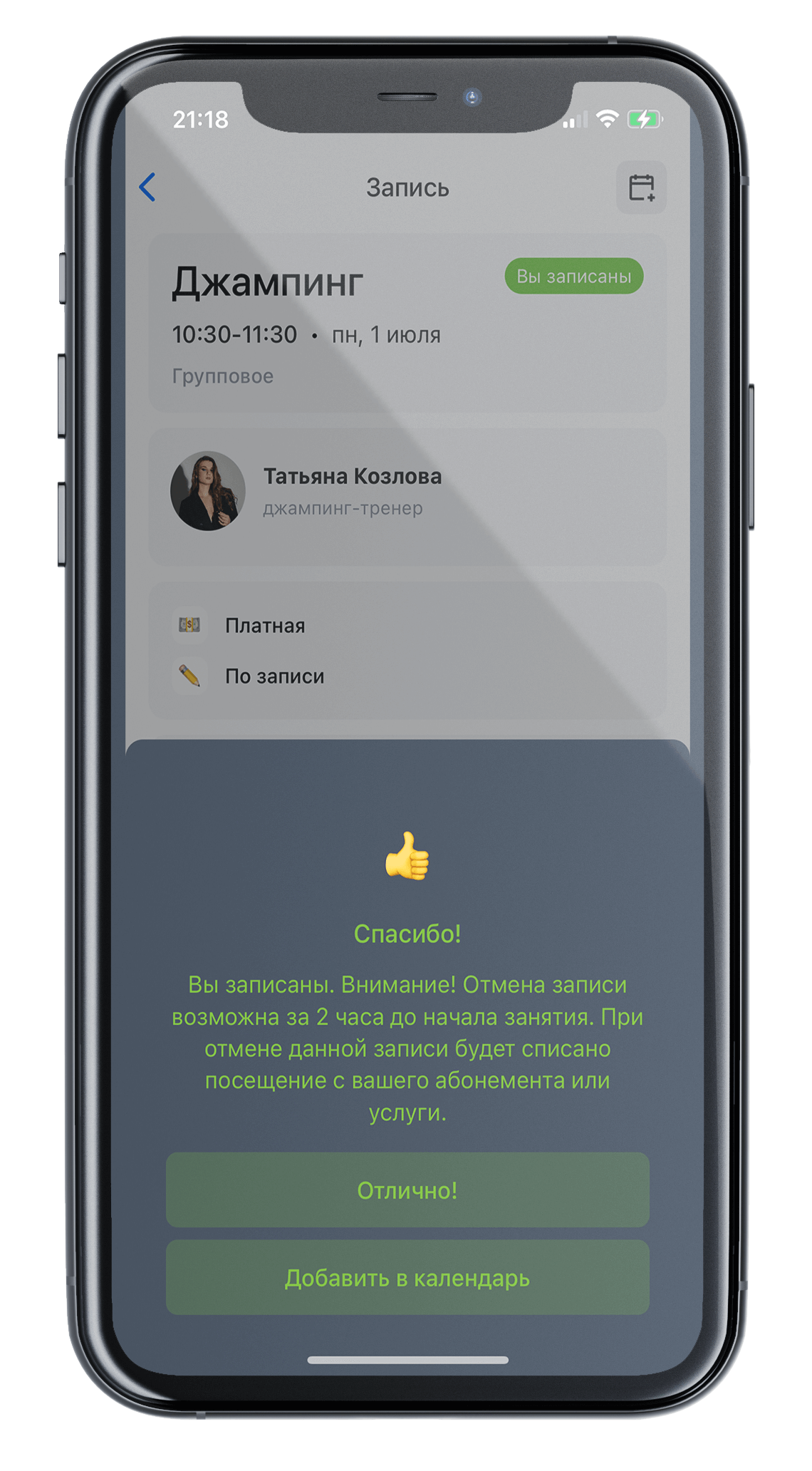Смотря к какой цели стремитесь. Первые положительные изменения - подъем настроения, снятие отечности, общий тонус в теле, ощутите сразу после первой тренировки. Если цель - снизить вес, то минимум 5 тренировок нужно посетить за 10-14 дней и в комплексе с нормализацией питания, вы уменьшитесь на размер одежды. В зависимости от того, сколько размеров нужно убрать - вычисляйте сколько вам потребуется времени на достижение к цели. Помните, главное НАЧАТЬ!